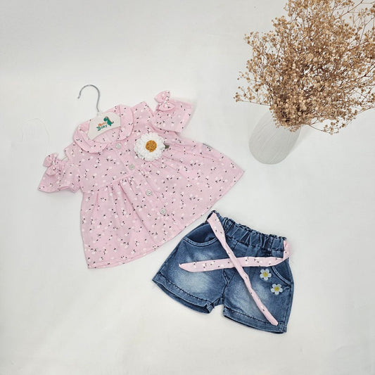 نفذ المنتجطقم بيبي بناتي بروش وردة بلونين