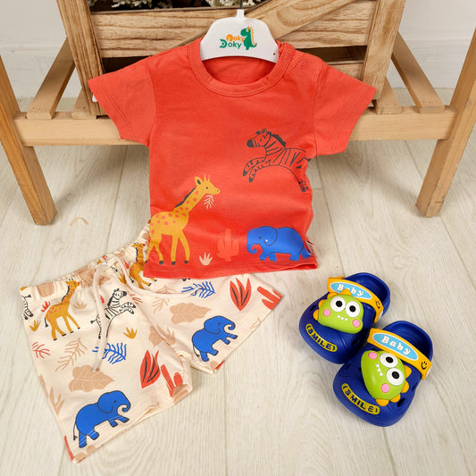 طقم تراك ولادي بثلاث الوان فيل وزرافه